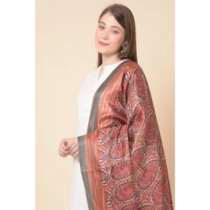 Generic Women’s Art Silk Printed Dupatta (Orange, Length: 2.25 to 2.50 Mtr)