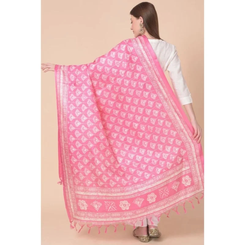 Generic Women's Art Silk Printed Dupatta (Pink, Length: 2.25 to 2.50 Mtr)