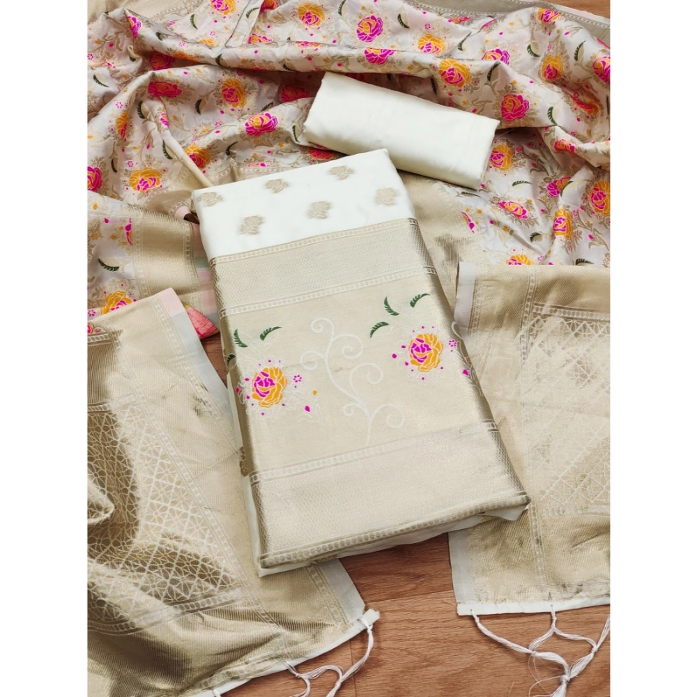 Women’s Banarasi Silk Printed Unstitched Salwar Suit Material With Dupatta
