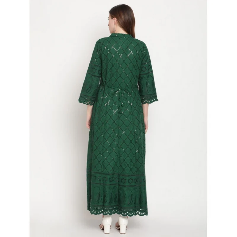 Women’s Casual 3/4th Sleeve Embroidered Cotton Kurti (Dark Green)