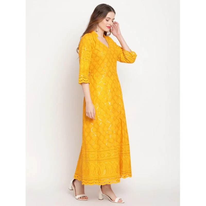 Women’s Casual 3/4th Sleeve Embroidered Cotton Kurti