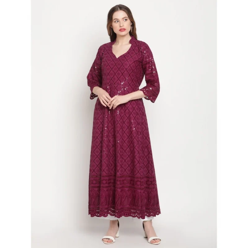 Women’s Casual 3/4th Sleeve Embroidered Cotton Kurti