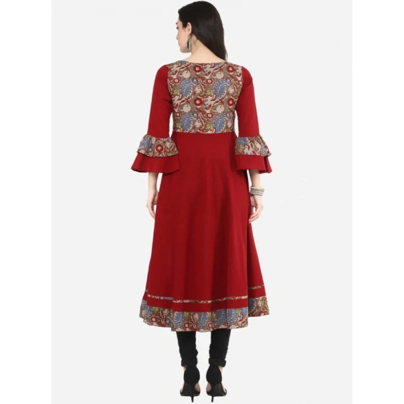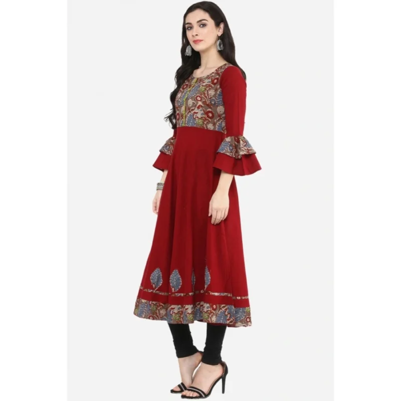 Women's Casual Bell Sleeves Printed Cotton Kurti (Maroon)