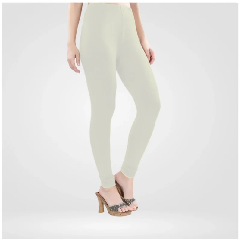 Women’s Cotton Blended Solid Churidar leggings (White)