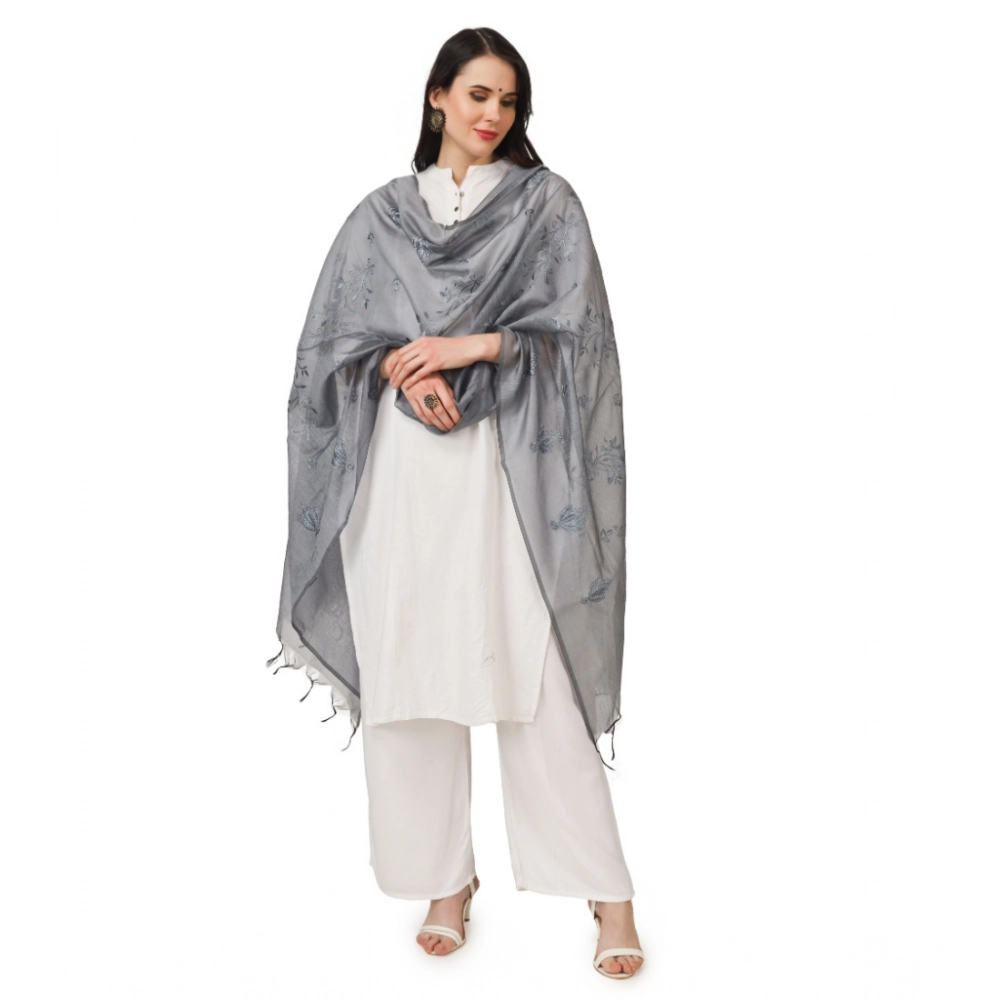 Generic Women's Cotton Embroidered Dupatta (Grey, Length: 2.25 to 2.50 Mtr)