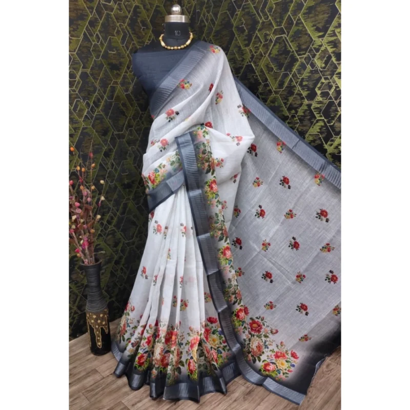 Women’s Cotton Linen Woven Design Saree With Unstitched Blouse 5.5Mtr
