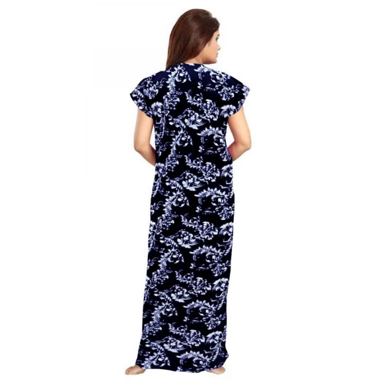 Women’s Cotton Printed Maxi Nighty (Blue)