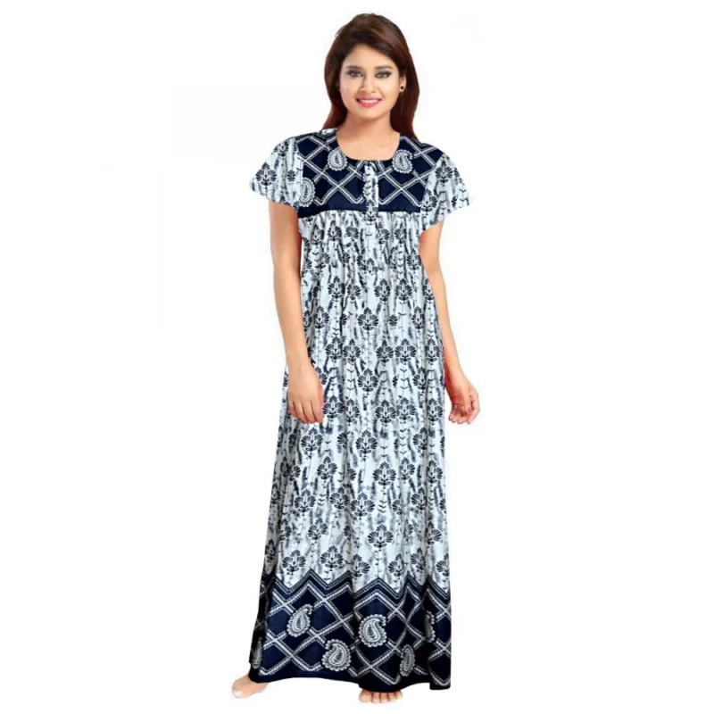 Women’s Cotton Printed Maxi Nighty (Navy Blue)