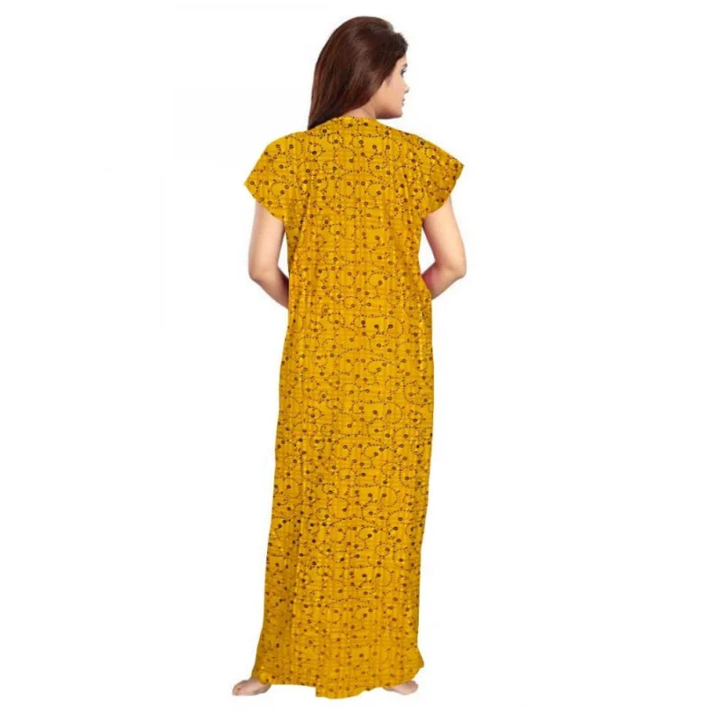 Women’s Cotton Printed Maxi Nighty (Yellow)