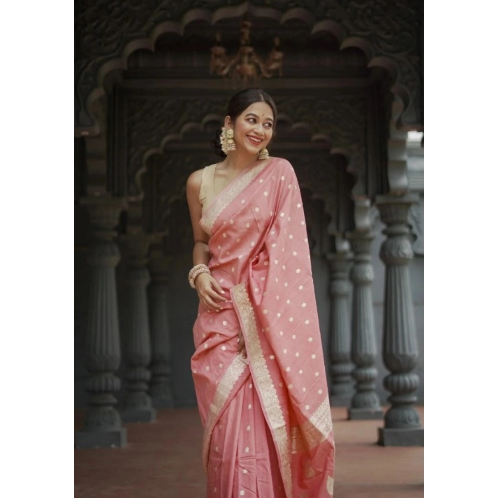 Women's Cotton  Printed Saree With Unstitched Blouse 5.5Mtr (Peach)