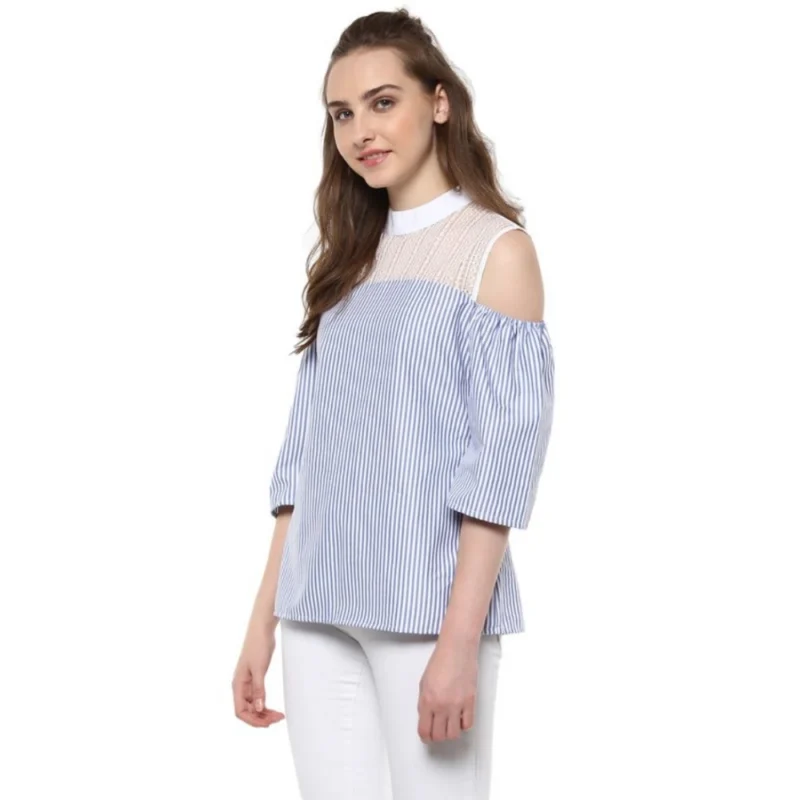 Women’s Cotton Striped Cold Shoulder Top