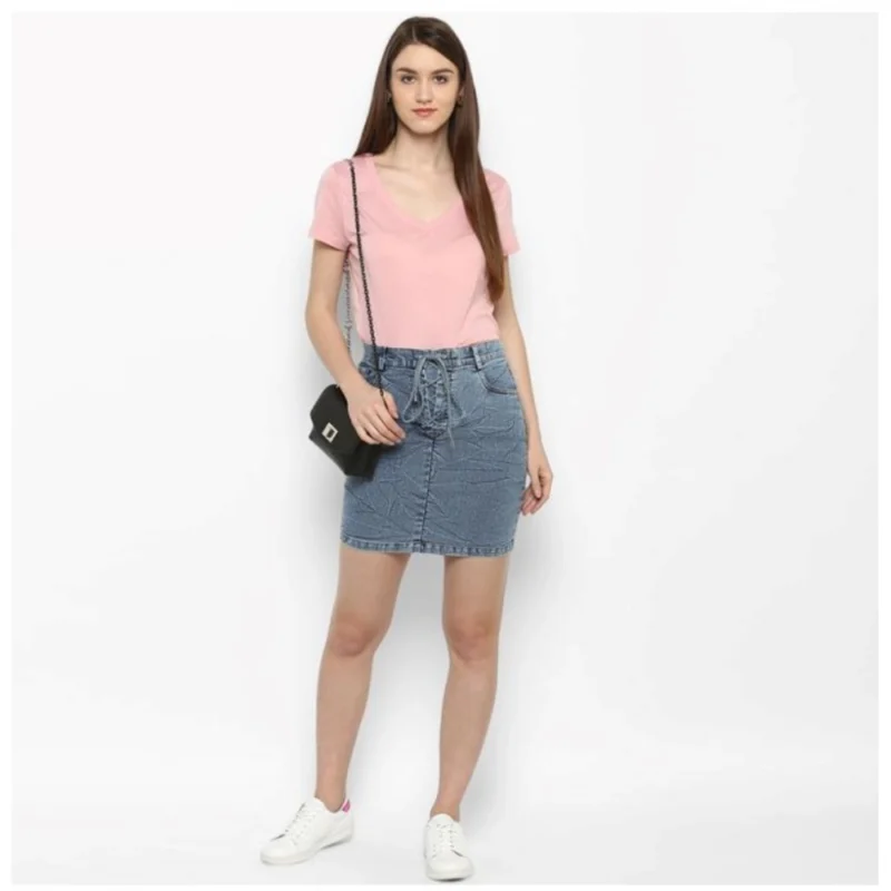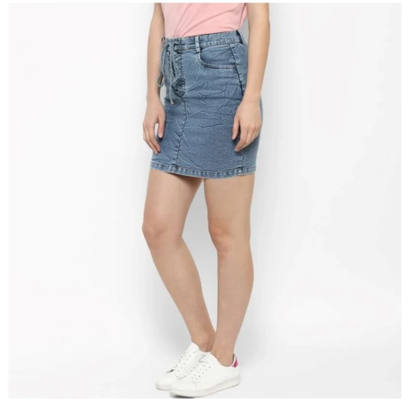 Women’s Denim Draw String Buttoned Skirt (Blue)