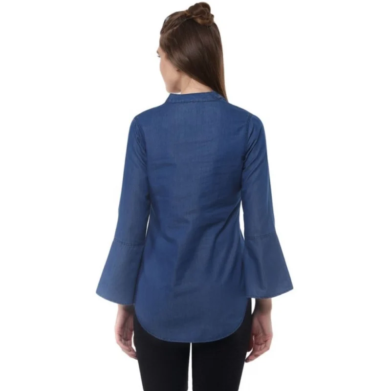 Women’s Denim Solid Bell Sleeve Regular Top