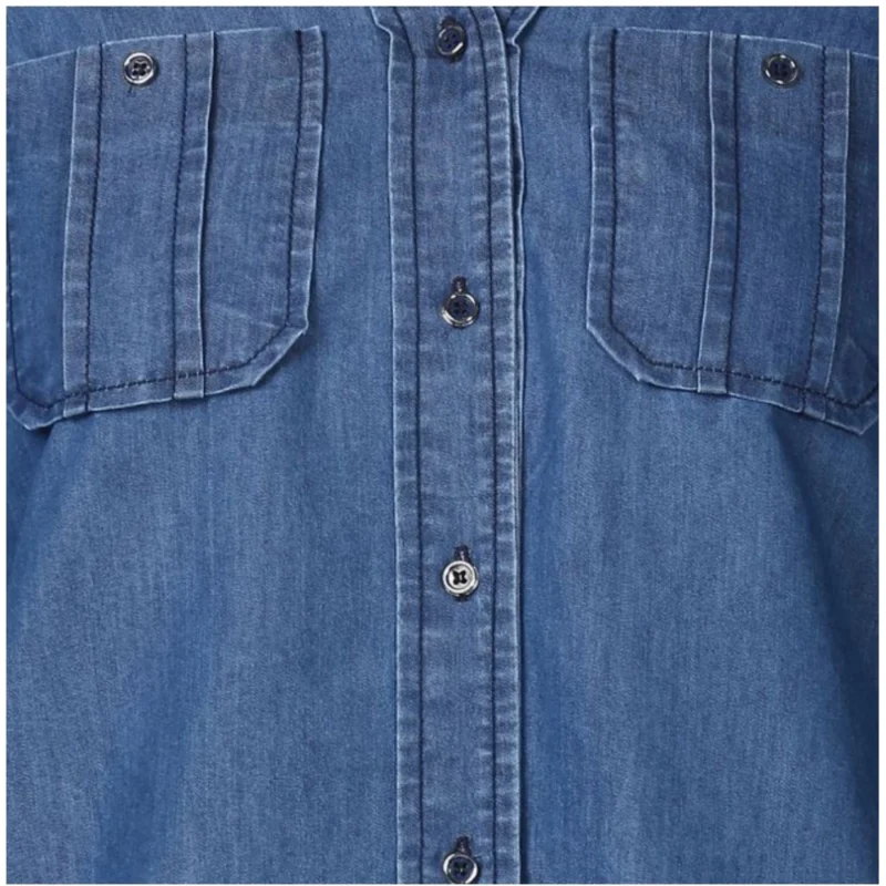 Women’s Denim Solid Long Sleeves Top (Blue)