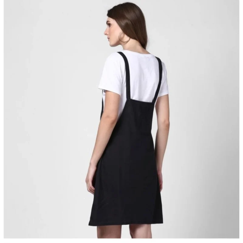 Women’s Denim Solid Shoulder Straps Above Knee Dungaree (Black)