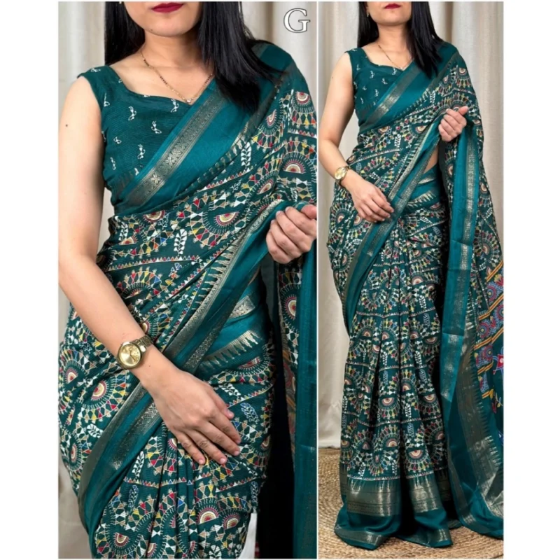 Women’s Denting Cotton Printed Saree With Unstitched Blouse 5.5Mtr