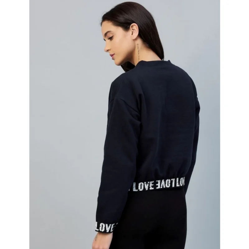 Women’s Fleece Solid Long Sleeves Sweatshirt (Navy)