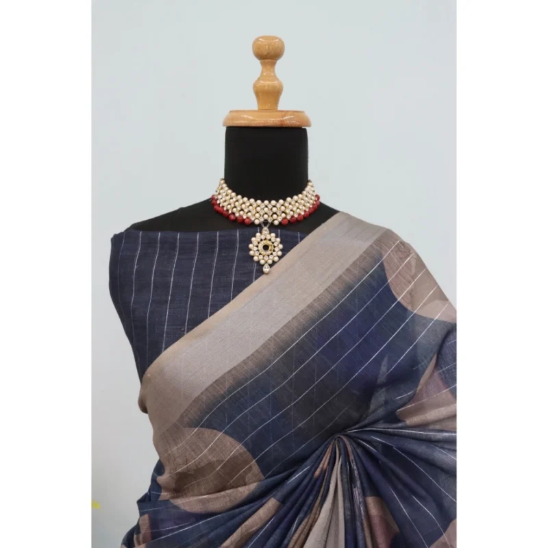 Women’s Linen Digital Print Saree With Unstitched Blouse 5.5Mtr