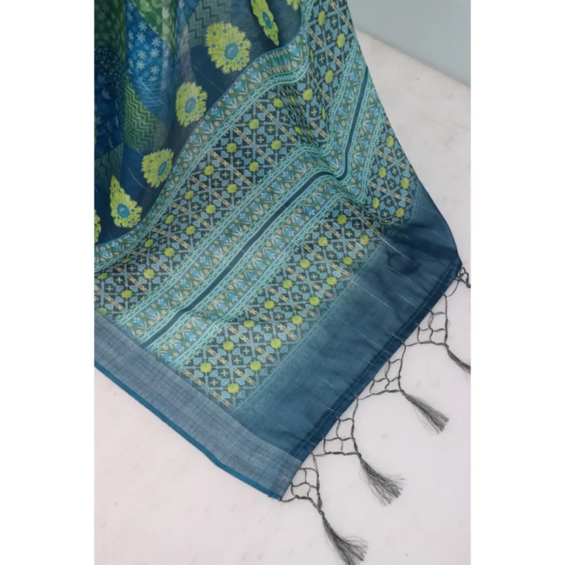 Women’s Linen Digital Print Saree With Unstitched Blouse 5.5Mtr