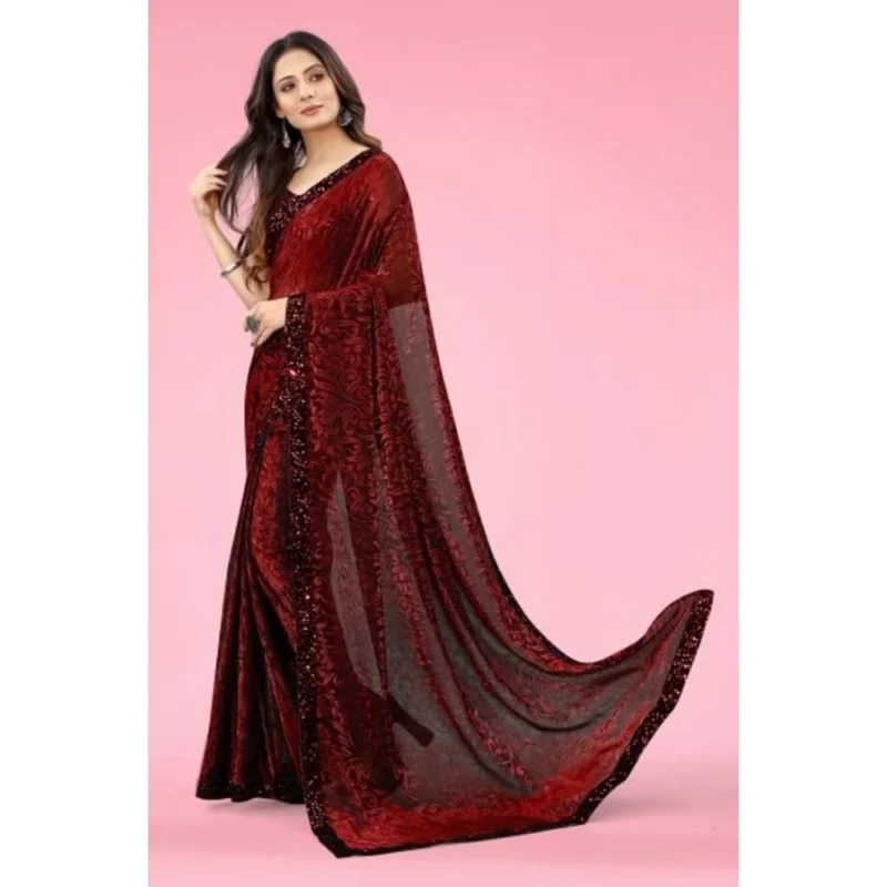 Women’s Lycra Floral Saree With Unstitched Blouse