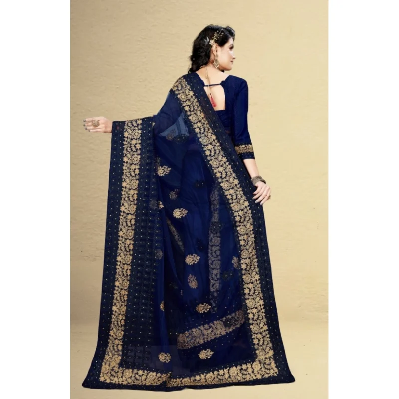 Women’s Net Saree With Blouse (Navy Blue, 5-6Mtrs)
