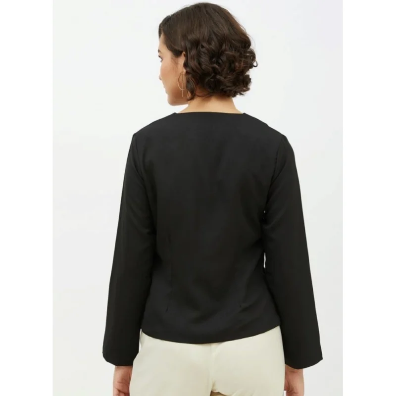 Women’s Polyester Asymmetrical Long Sleeves Top (Black)