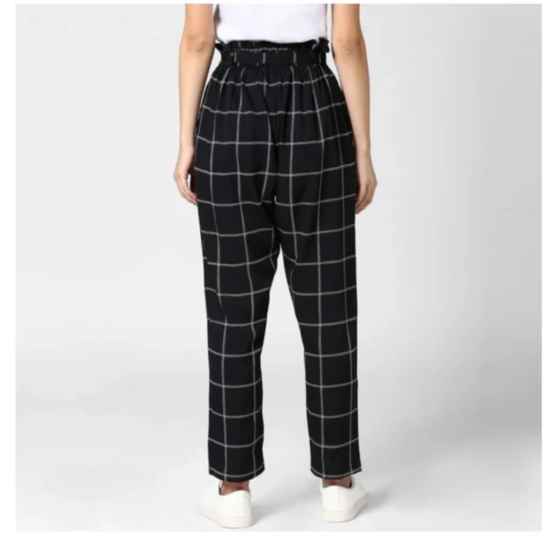 Women’s Polyester Checkered Elasticated Trousers (Black – White)