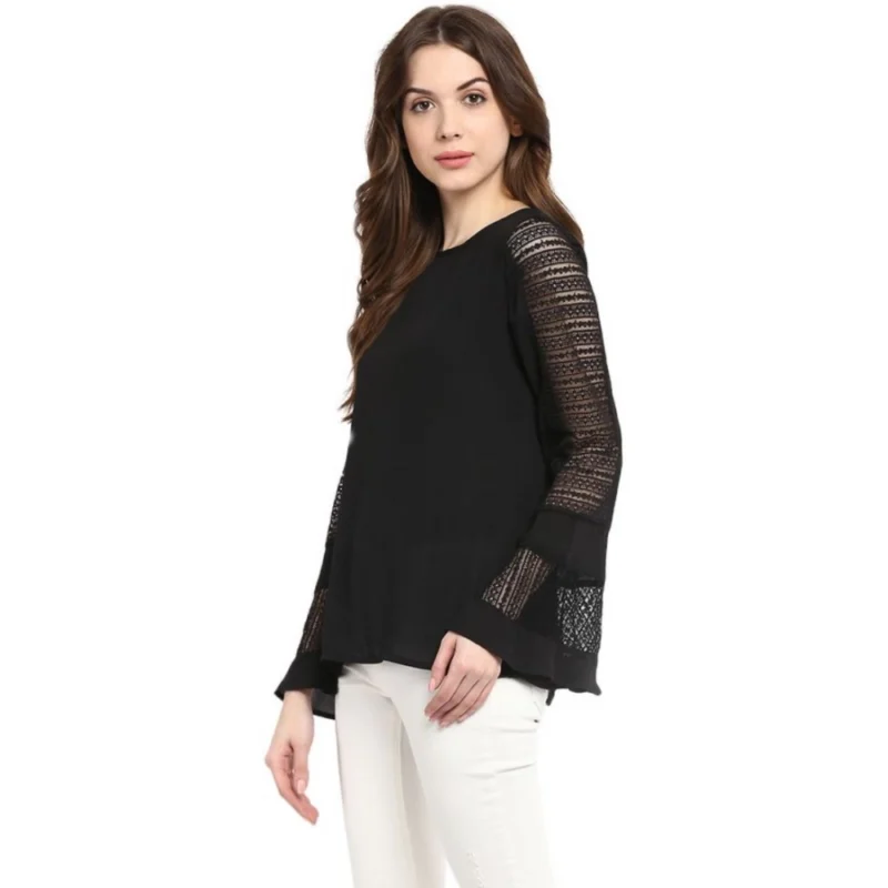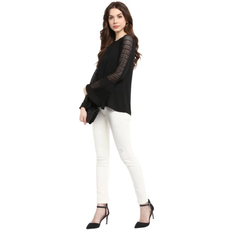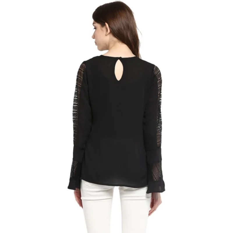 Women’s Polyester Georgette Self Design Bell Sleeve Regular Top