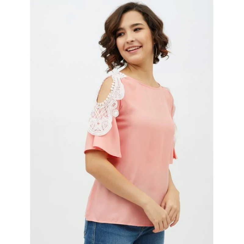 Women’s Polyester Lace Inserts Cold Shoulder Top