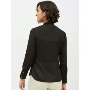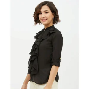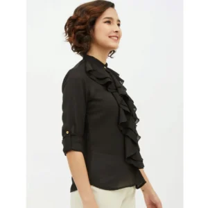 Women’s Polyester Ruffled Long Sleeves Standard Length Shirt