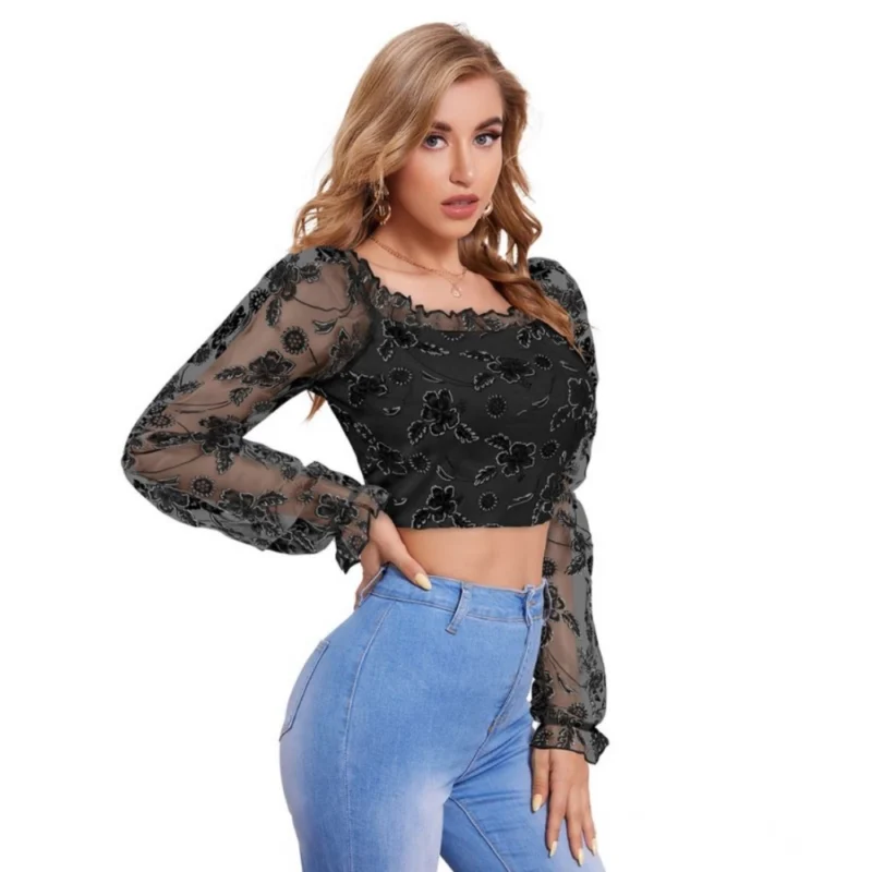 Women’s Polyester Solid Full Sleeves Square Collar Top