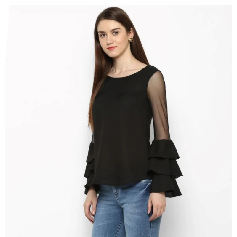 Women’s Polyester Solid Tier Sleeve Top