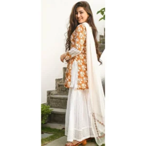 Procin Print Cotton Angrakha Pattern Kurti With Lace And Tassel Details Set (Mustard Yellow)