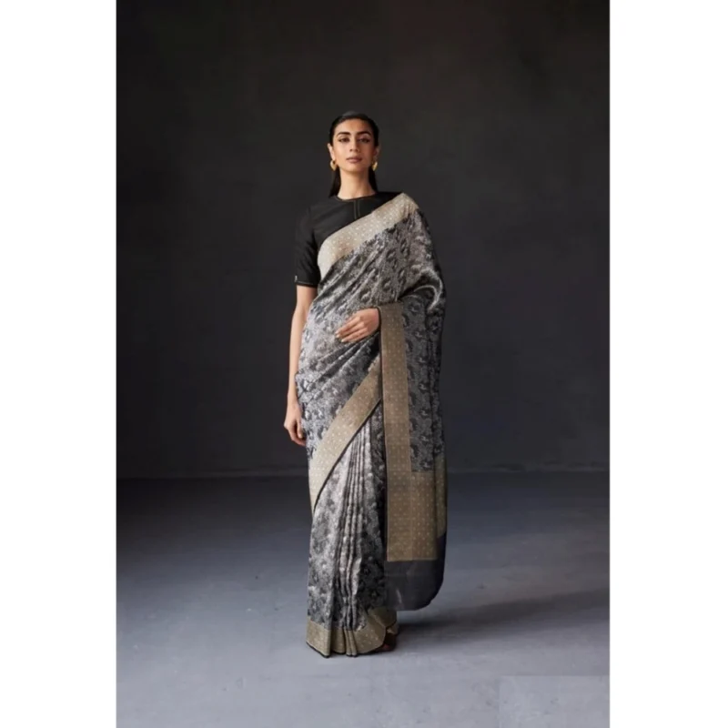 Women’s Silk Printed Saree With Unstitched Blouse 5.5Mtr (Grey)