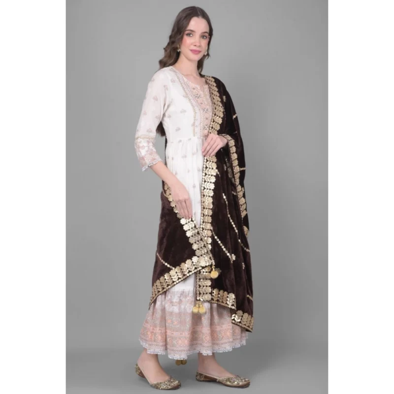 Generic Women’s Velvet Gotta Patti Dupatta (Brown, Length: 2.25 to 2.50 Mtr)