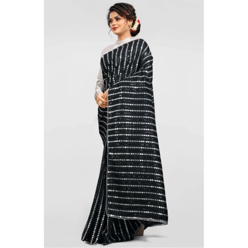 Women’s Vichitra Saree with Blouse (Silver, 5-6 Mtrs)