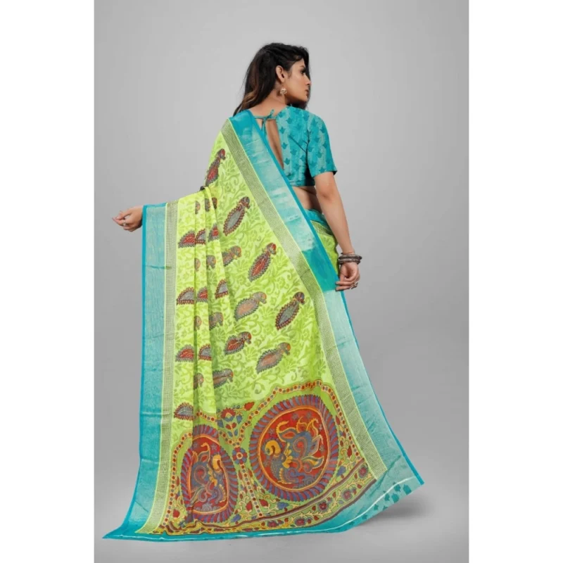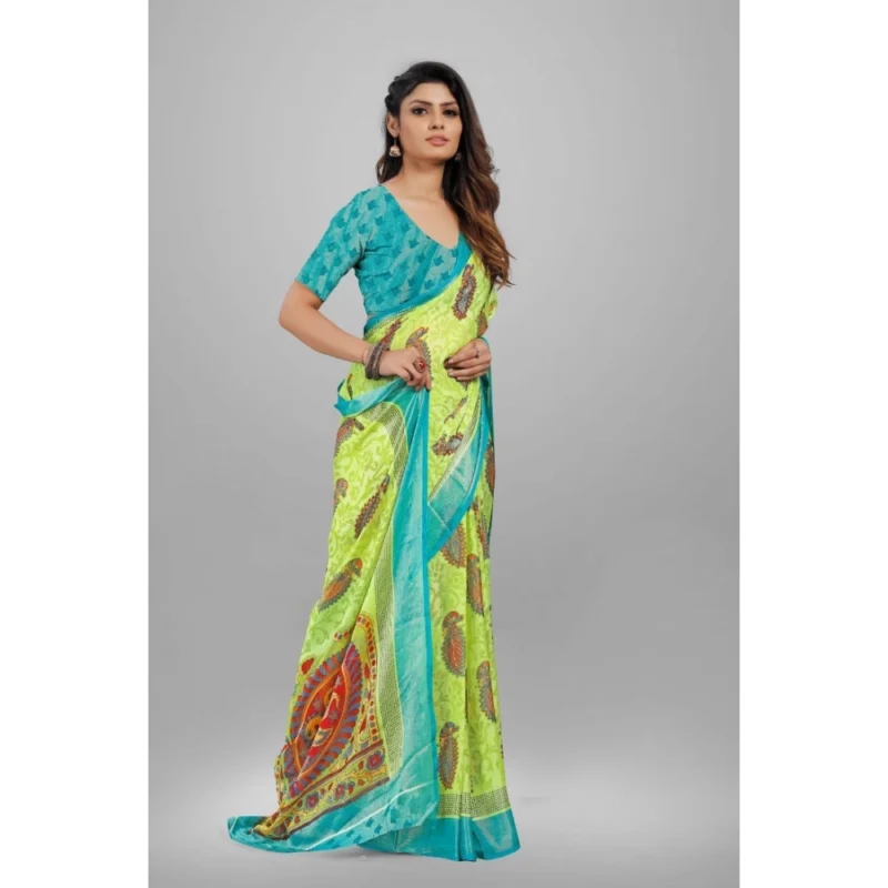 Women's Viscose Rayon Printed Saree With Unstitched Blouse (Mehendi)