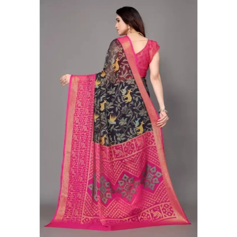 Women’s Viscose Rayon Printed Saree With Unstitched Blouse (Navy Blue)