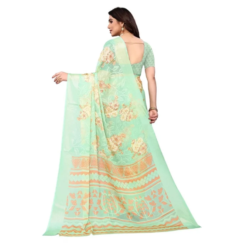 Women’s Viscose Rayon Printed Saree With Unstitched Blouse (Pista)