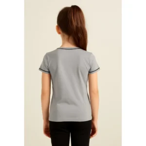 Girl’s Cotton Printeded Round Neck T-Shirt (Grey)