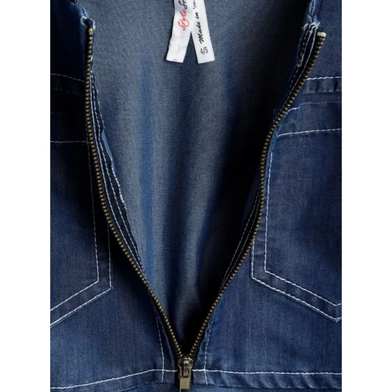 Girl’s Denim Floral Printed Bell Sleeve Halter Neck Dress