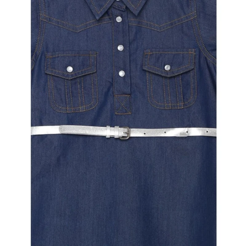 Girl’s Denim Solid Short Sleeve Shirt collar Dress