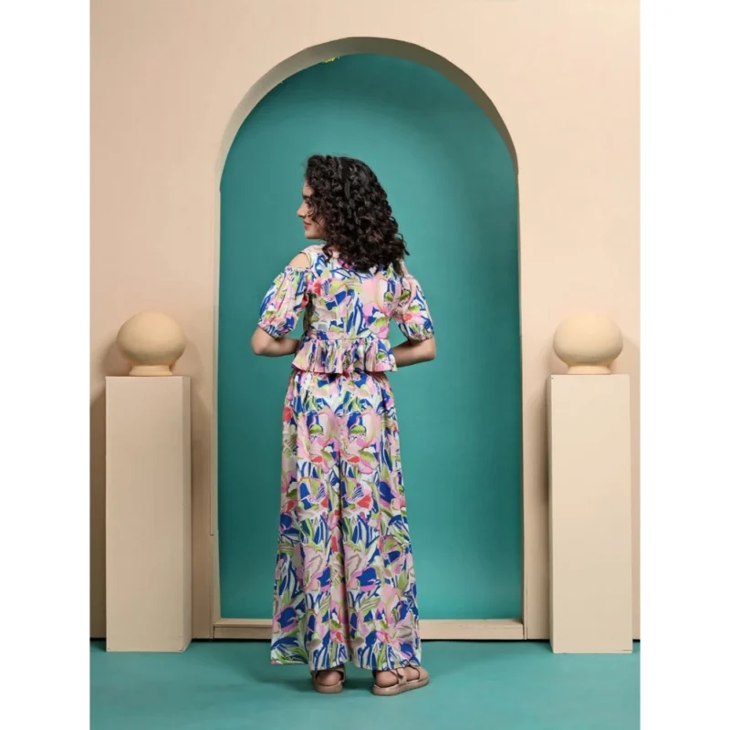 Girl’s Maslin Printed Crop Top And Plazzo Set (Multicolor)