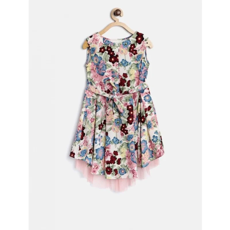 Girl’s Polyester Crepe Printed Short Sleeve Round Neck Dress