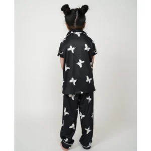 Girl’s Silk Bleand Printed Short Sleeve Night Suit Set