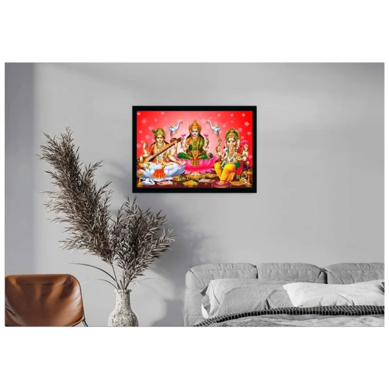Laxmi Ganesh Saraswati Painting with Synthetic Photo Frame