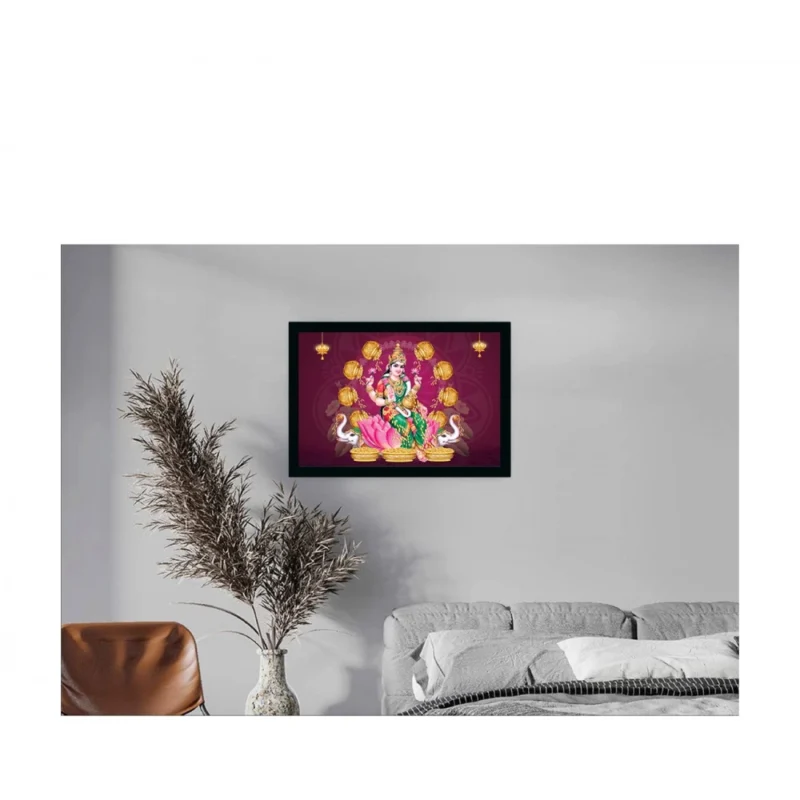 Maa Laxmi Painting with Synthetic Photo Frame (Multicolor)