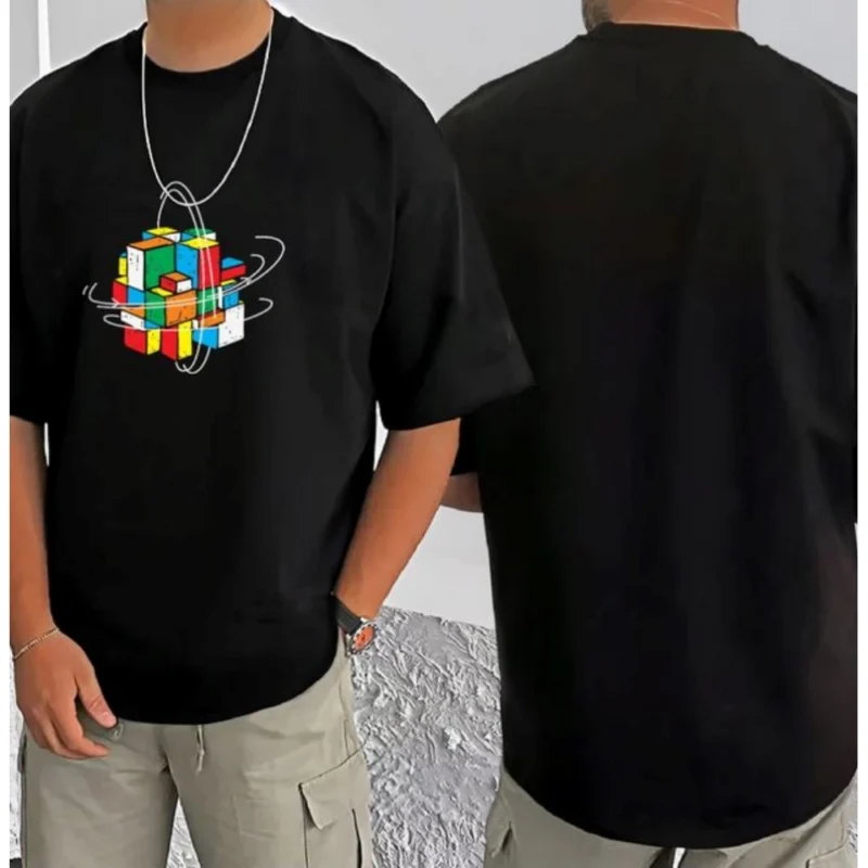 Men’s Casual Cotton Blend Printed Round Neck Half Sleeve T-Shirt (Black)