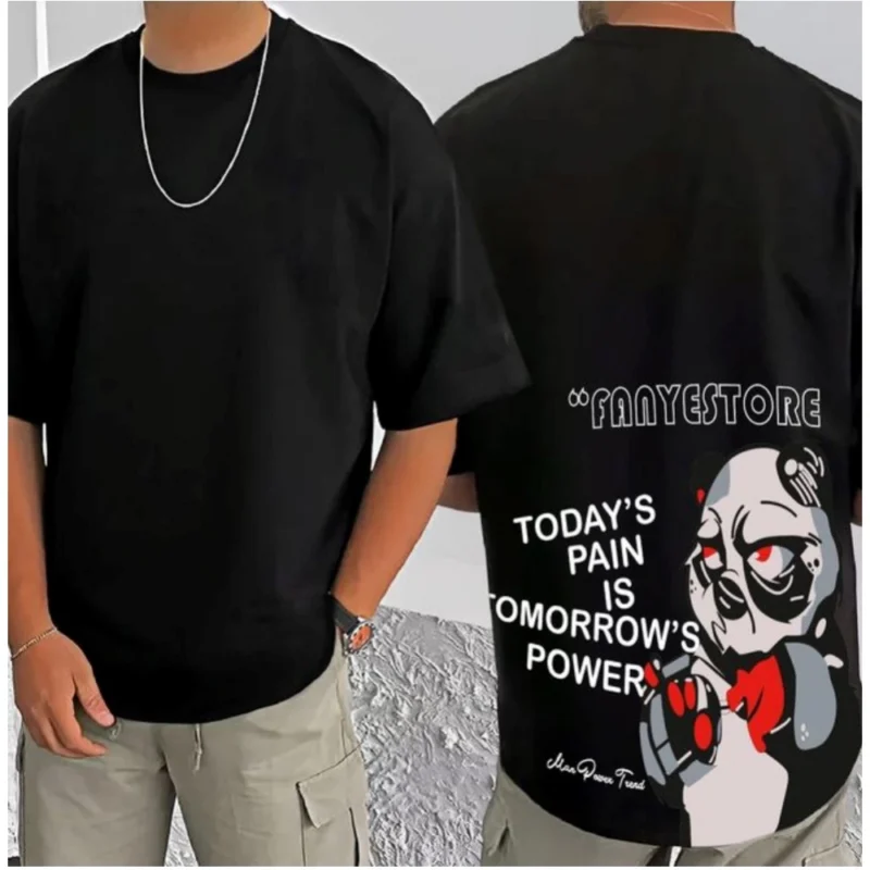 Men’s Casual Cotton Blend Printed Round Neck Half Sleeve T-Shirt (Black)