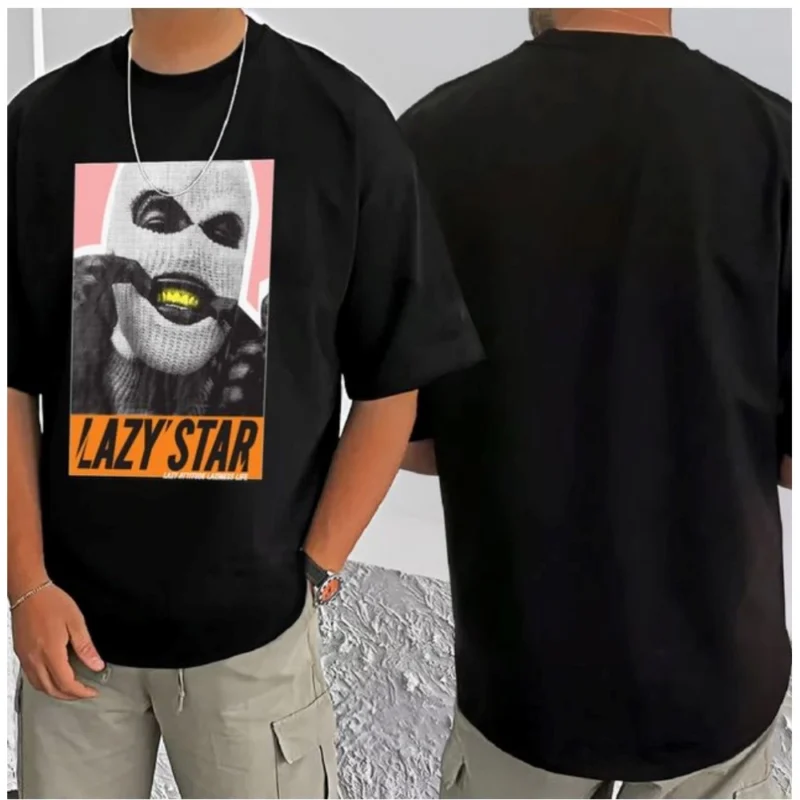 Men’s Casual Cotton Blend Printed Round Neck Half Sleeve T-Shirt (Black)